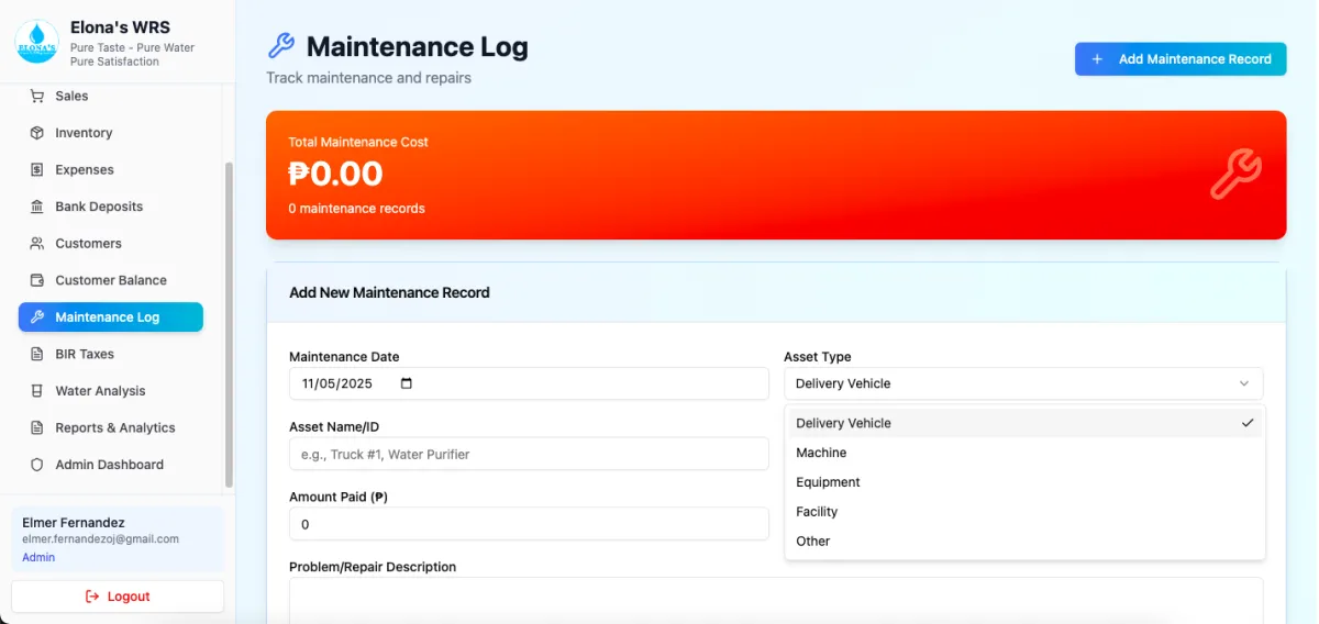 Yes! 🧩 Pwede mong i-edit ang logo, business name, and details sa Admin Dashboard β€” perfect para sa branding mo kung may sariling refilling station name.